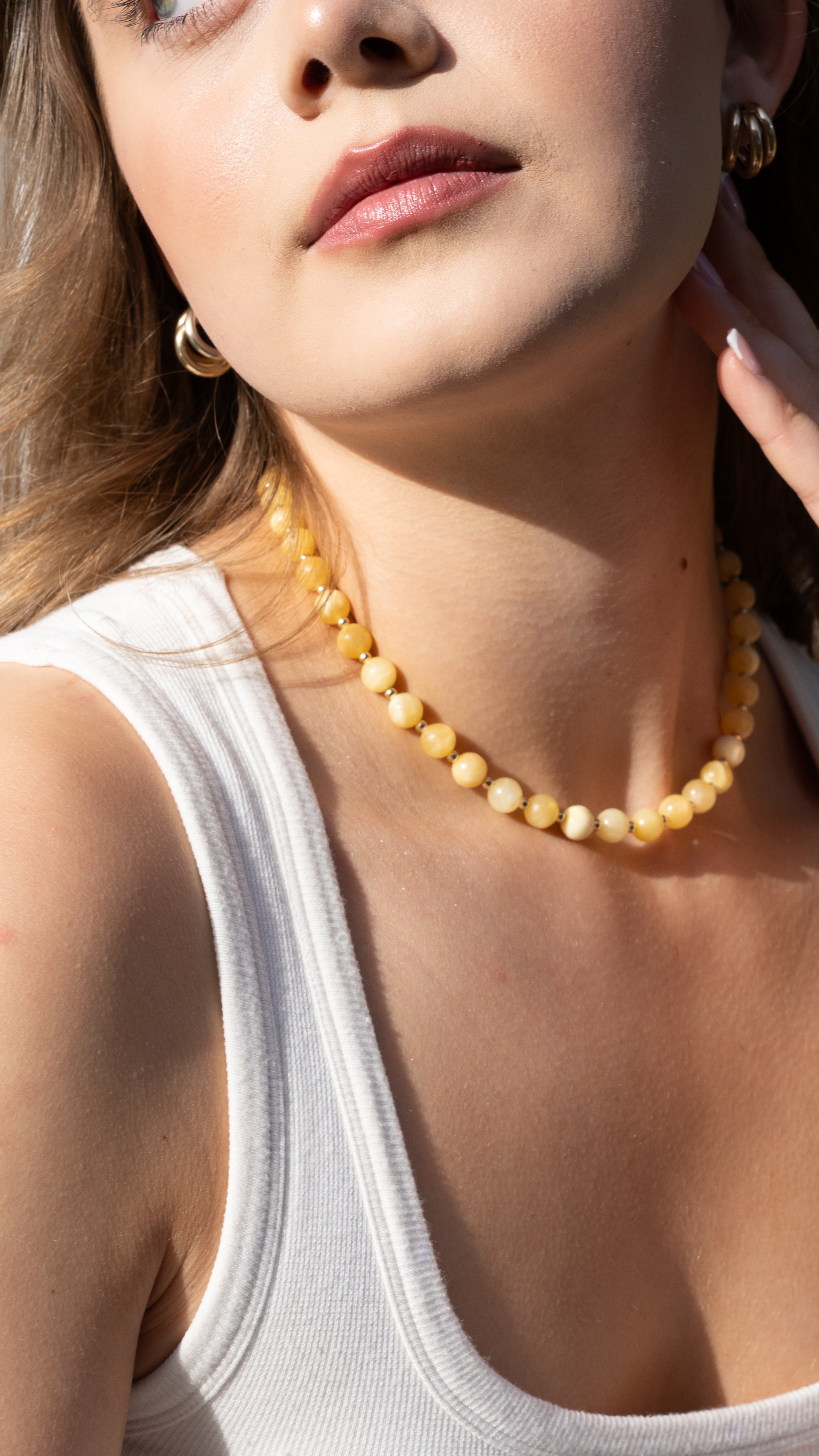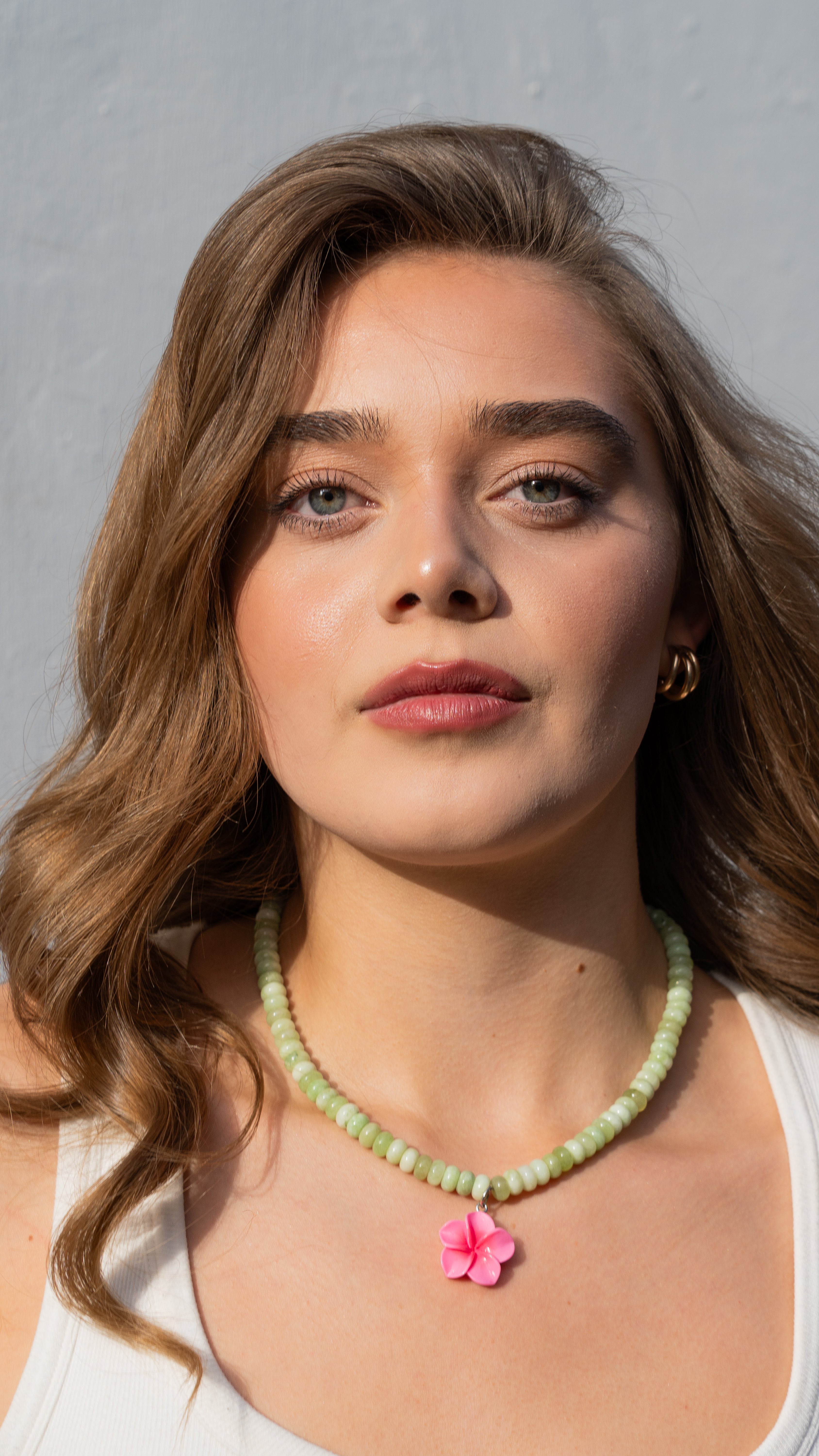 This necklace is hand-crafted from rounded Natural Jade gemstones — each one polished to perfection.